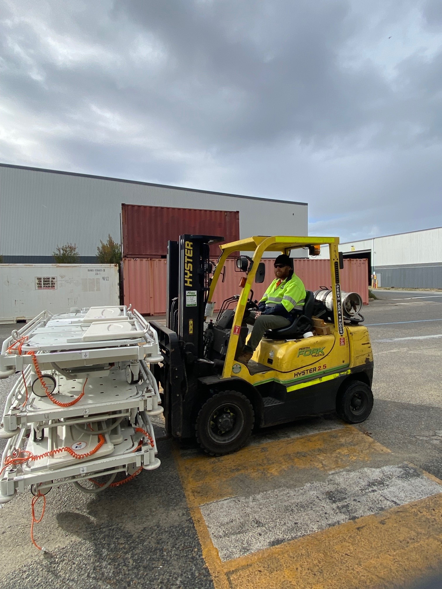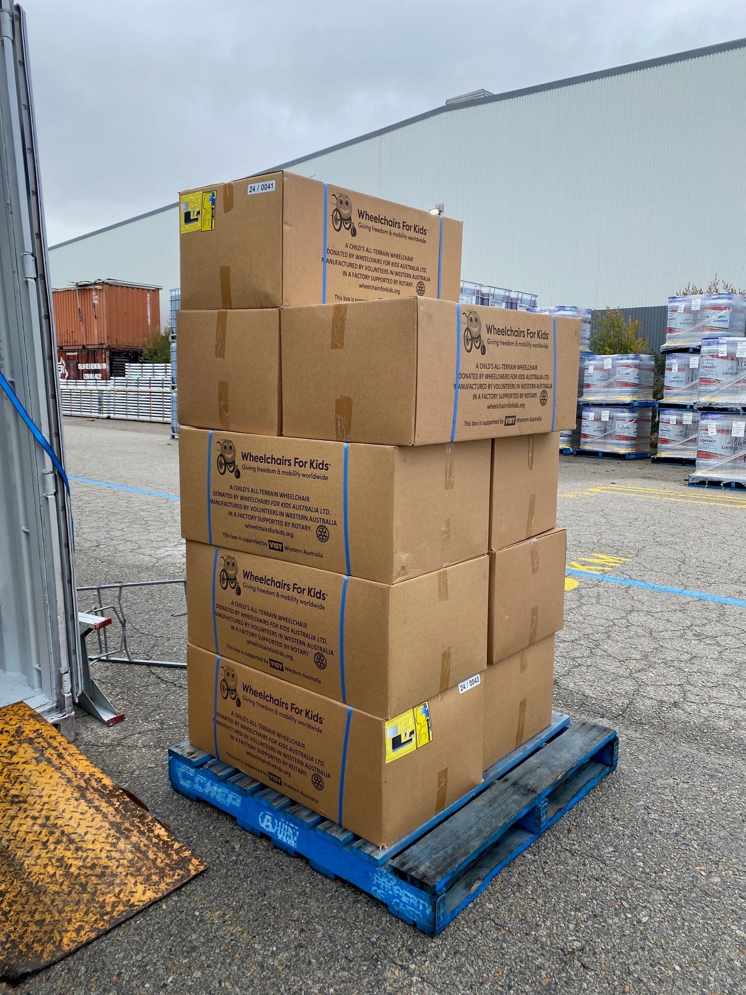 Huge thanks to our hard working volunteer packers – Graeme, Ian, Helen, Loic and Dawn – and to Michael, Jim and the team at AWH for forklift assistance and storage support.